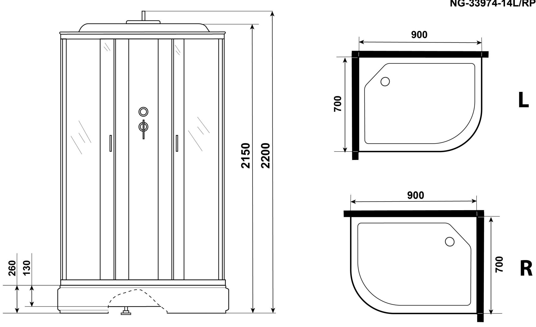 Душевая кабина Niagara NG-33974-14LP 90x70см серебро/матовое