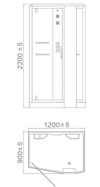 • Внешняя, электронная панель управления: включение душевой кабины, радио FM, полноформатная LED подсветка потолка, паровая сауна