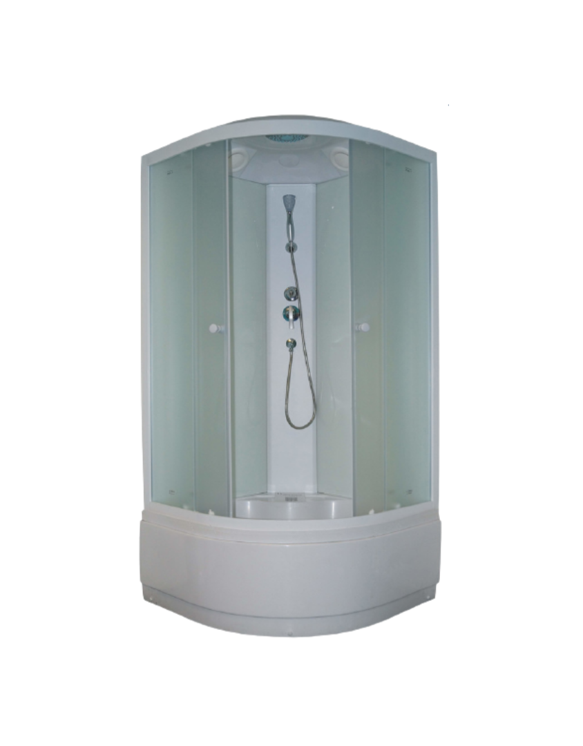 Размер: 100х100х215 смДушевая кабина с высоким поддоном практична в использовании – в ней удобно купать детей и животных, замачивать вещи и постельное белье. За счет закругленной формы кабина занимает минимум места в санузле. При этом внутри душевой зоны достаточно места, чтобы принять водные процедуры с комфортом.Достоинства:Матовое стекло, 4 мм. Безопасное закаленное полотно устойчиво к случайным ударам.Стенки – закаленное стекло белое 4 мм.Профиль: белый алюминиевый. Не боится высокой влажности и перепадов температуры, устойчив к образованию коррозии.Поддон: высокий 42 см, полукруглый, рельефное дно, литое сиденье.Комплектация: верхний душ ТРОПИК, ручной душ, сифон.Магнитные уплотнители под 45° не позволяют теплу выходить из душевой кабины, защищают помещение от просачивания воды.Раздвижные двери не соскакивают с направляющих, образуют комфортную ширину входа.Соединение без болтовое.Дополнительные силиконовые уплотнители для задних стенок.Внимание! Производитель оставляет за собой право вносить изменения в конструкцию и комплектацию моделей без предварительного уведомления!
