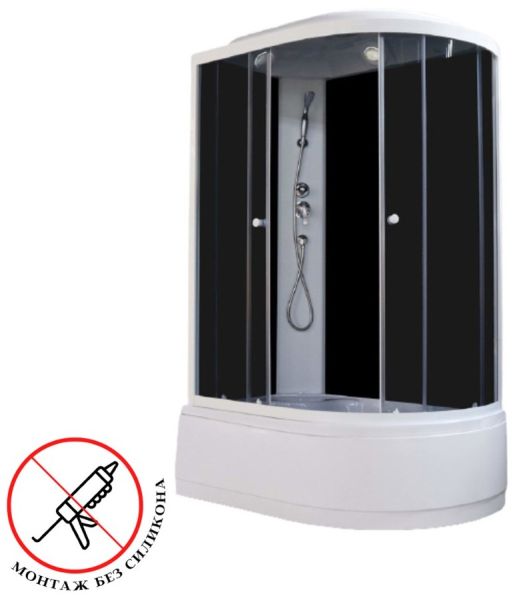 Левосторонняя кабина с высоким поддоном. Сочетание черного стекла и белого профиля подчеркивают стильный дизайн модели. Душевая кабина станет отличным дополнением в современном оформлении ванной комнаты.Достоинства:
