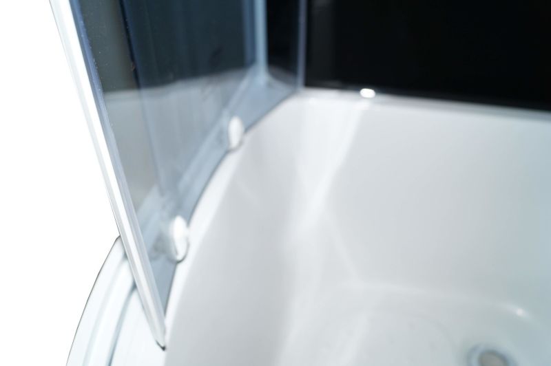 Душевая кабина ECM921Размер: 90х90х215 см.Особенности:Стекло: закаленное, противоосколочное, ударопрочное, тонированное, 4 мм.Стенки: закаленное, закаленное, противоосколочное, ударопрочное, черное.Профиль: белый, алюминиевый.Центральная панель белая.Поддон: средний, 26 см, полукруглый, с бортиком (система аквастоп). Материал - АБС пластик, армирован стекловолокном. Дополнительная ножка конструкции. Противоскользящее покрытие. Съёмный передний экран на защелках.Комплектация: смеситель, верхний душ ТРОПИК, ручной душ, сифон.Магнитные уплотнители двери под 45°.Соединение без болтовое. Дополнительные силиконовые уплотнители.Двери раздвижные, на роликах. Нижние ролики на клипсе с механизмом отстегивания. Силиконовые водоотсекатели.Монтаж без силиконаДушевая кабина отлично подходит для дачи и квартиры.Преимущества модели: экономия пространства, вместительность, безопасное стекло, плавное бесшумное открывание дверей, простая регулировка дверей, повышенная герметичность, легкий доступ к стеклу и профилю для очистки.Высота поддона 26 см - золотая середина !