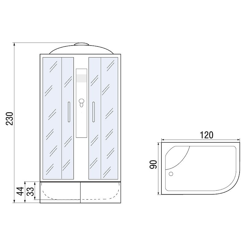 Глубина поддона: 330 мм.