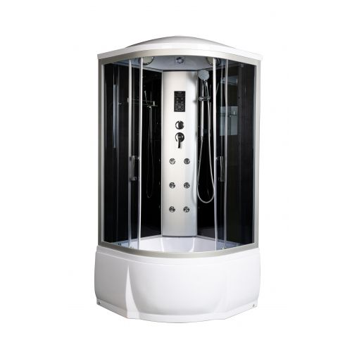 ~ крыша ~ верхний душ ~ верх.свет ~ динамик ~ вентилятор ~ цент.стойка ~ пульт упр-я сенсорный ~ радио ~ смеситель с переключ. режимов ~ 6 г/м форс. ~ штанга ~ ручной душ 3х режимн. ~ зеркало ~ полочка ~ сиденье ~ поддон п/кр. выс.с/сид-ем с/съем.экр. (Н=46см) ~ сифон