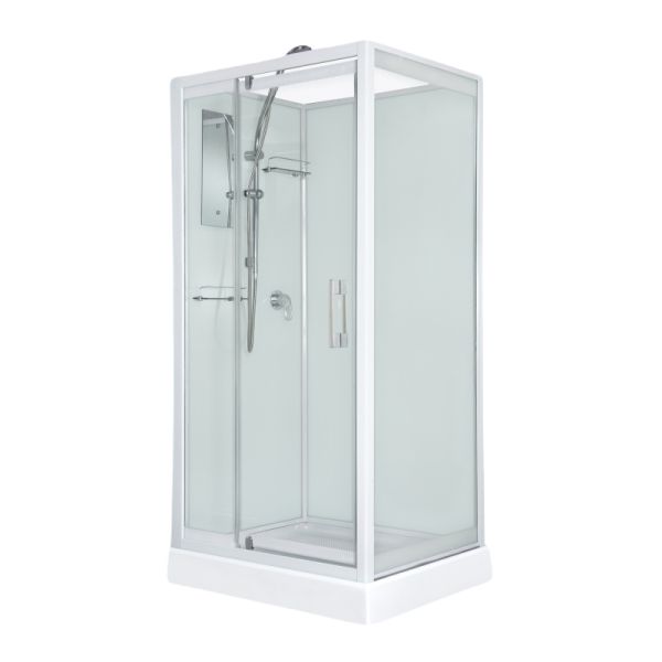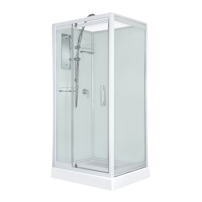 Стекло 6 мм. Задняя стенка - крашеное непрозрачное белое . Фронтальное стекло и боковые стекла прозрачные. Дверь стекло прозрачное.