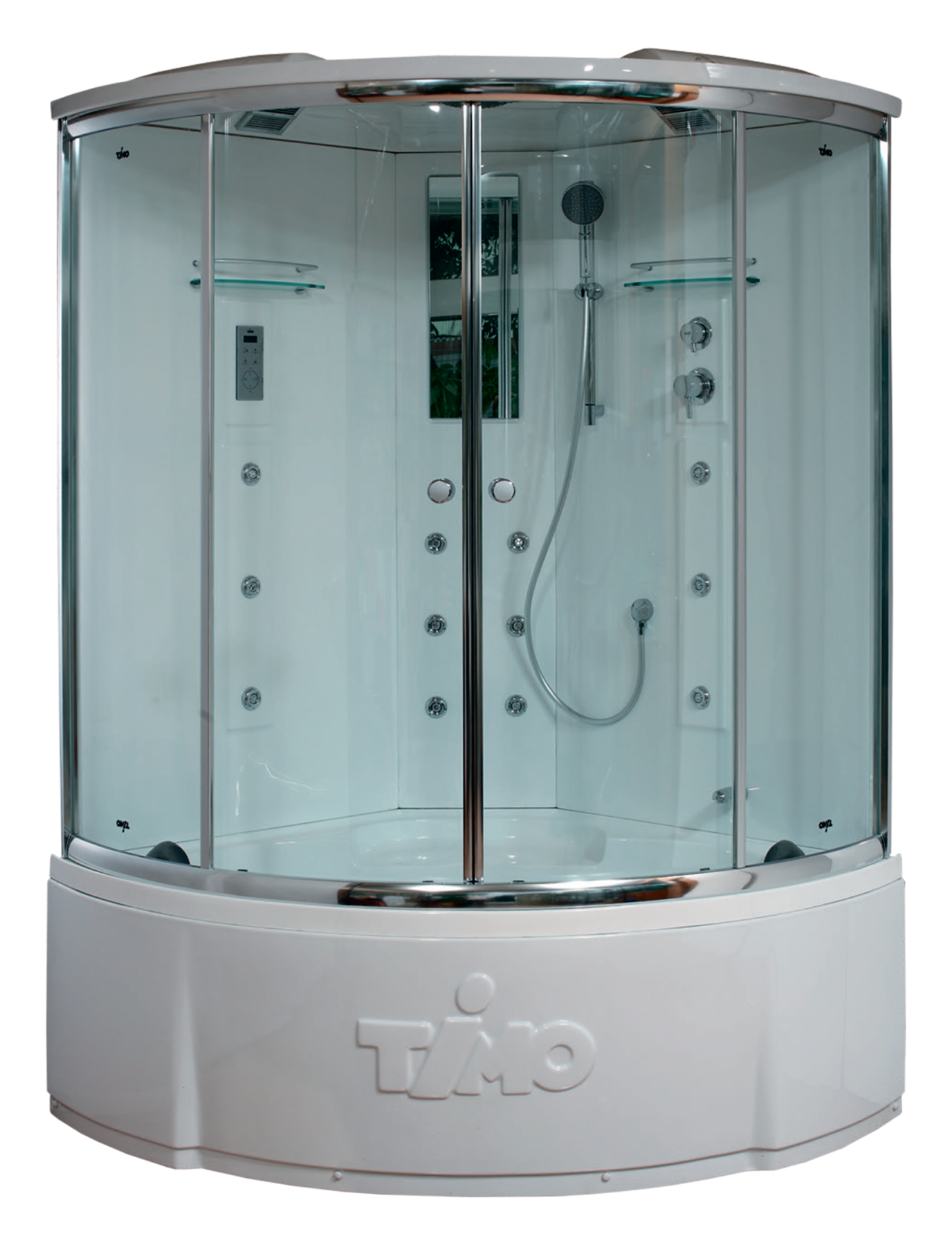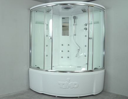 Душевой бокс Timo Lux T-7735C, 135 x 135 см, c крышей, высокий поддон, с гидромассажем, стекла прозрачные, профиль хром