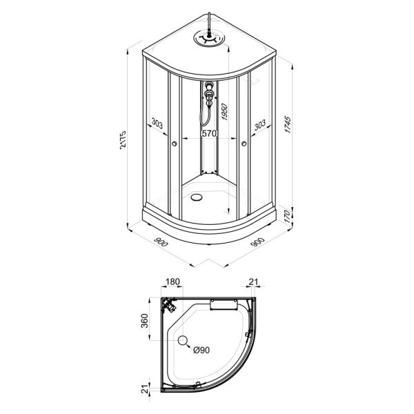 Душевая кабина Triton Грэй Щ0000066462 90x90 см профиль чёрный стекло тонированное