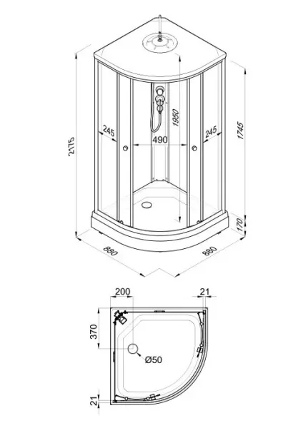Душевая кабина Triton Нова Щ0000065774 88x88 см профиль чёрный стекло прозрачное купить