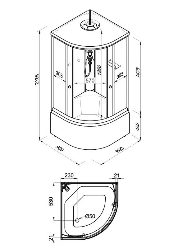 Размер: 90 x 90 x 218.5 см