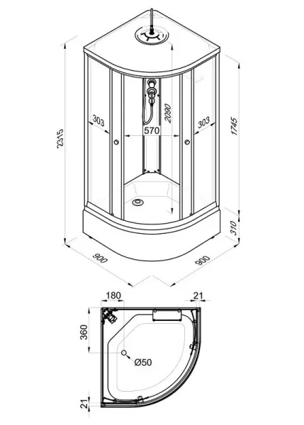 • Размеры: 90х90х228
