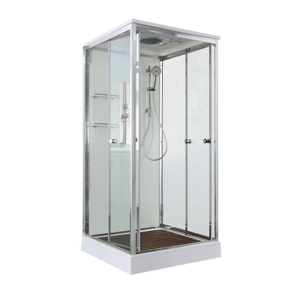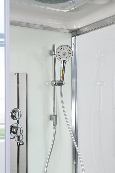 Стильная душевая кабина AvaCan сочетает в себе высокую функциональность, практичность и надежность. При изготовлении применяется безопасное закаленное стекло, надежно фиксируемое алюминиевым профилем. Профиль сделан из алюминия повышенной прочности. Сборка без силикона (увеличивает срок службы, защищает от протечек), внутренняя сборка (облегчает установку и ревизию; позволяет установить в ограниченном пространстве и обойтись без демонтажа других сантехнических приборов), смеситель резьбовой (без хомутов).Двойные металлические ролики дверей (распределение нагрузки на два ролика, увеличивают срок службы). Душевая штанга(позволяет регулировать по высоте ручную лейку), ручная арома-лейка с витамином С (картридж в комплекте,есть возможность замены или удаления картриджа), полочки(из стекла, с ограничителем), сифон с гидрозатвором.