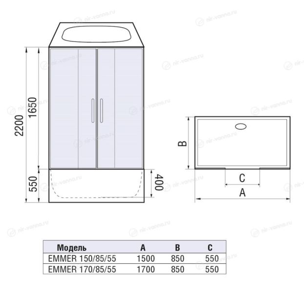 Душевая кабина WW500 EMMER 170/85/55-2 1700х850х2200 с поддоном