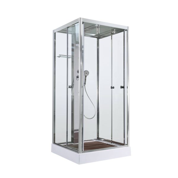 Стильная душевая кабина AvaCan сочетает в себе высокую функциональность, практичность и надежность. При изготовлении применяется безопасное закаленное стекло, надежно фиксируемое алюминиевым профилем. Профиль сделан из алюминия повышенной прочности. Сборка без силикона (увеличивает срок службы, защищает от протечек), внутренняя сборка (облегчает установку и ревизию; позволяет установить в ограниченном пространстве и обойтись без демонтажа других сантехнических приборов), смеситель резьбовой (без хомутов).Двойные металлические ролики дверей (распределение нагрузки на два ролика, увеличивают срок службы). Душевая штанга(позволяет регулировать по высоте ручную лейку), ручная арома-лейка с витамином С (картридж в комплекте,есть возможность замены или удаления картриджа), полочки(из стекла, с ограничителем), сифон с гидрозатвором.