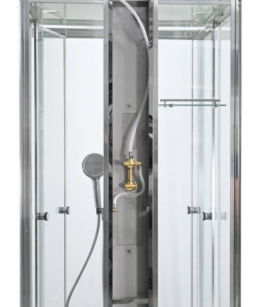 Стильная душевая кабина AvaCan сочетает в себе высокую функциональность, практичность и надежность. При изготовлении применяется безопасное закаленное стекло, надежно фиксируемое алюминиевым профилем. Профиль сделан из алюминия повышенной прочности. Сборка без силикона (увеличивает срок службы, защищает от протечек), внутренняя сборка (облегчает установку и ревизию; позволяет установить в ограниченном пространстве и обойтись без демонтажа других сантехнических приборов), смеситель резьбовой (без хомутов). Съемный экран поддона (позволяет осуществлять подключение и ревизию сифона).Двойные металлические ролики дверей (распределение нагрузки на два ролика, увеличивают срок службы). Душевая штанга(позволяет регулировать по высоте ручную лейку), ручная арома-лейка с витамином С (картридж в комплекте,есть возможность замены или удаления картриджа), полочки(из стекла, с ограничителем), сифон с гидрозатвором.
