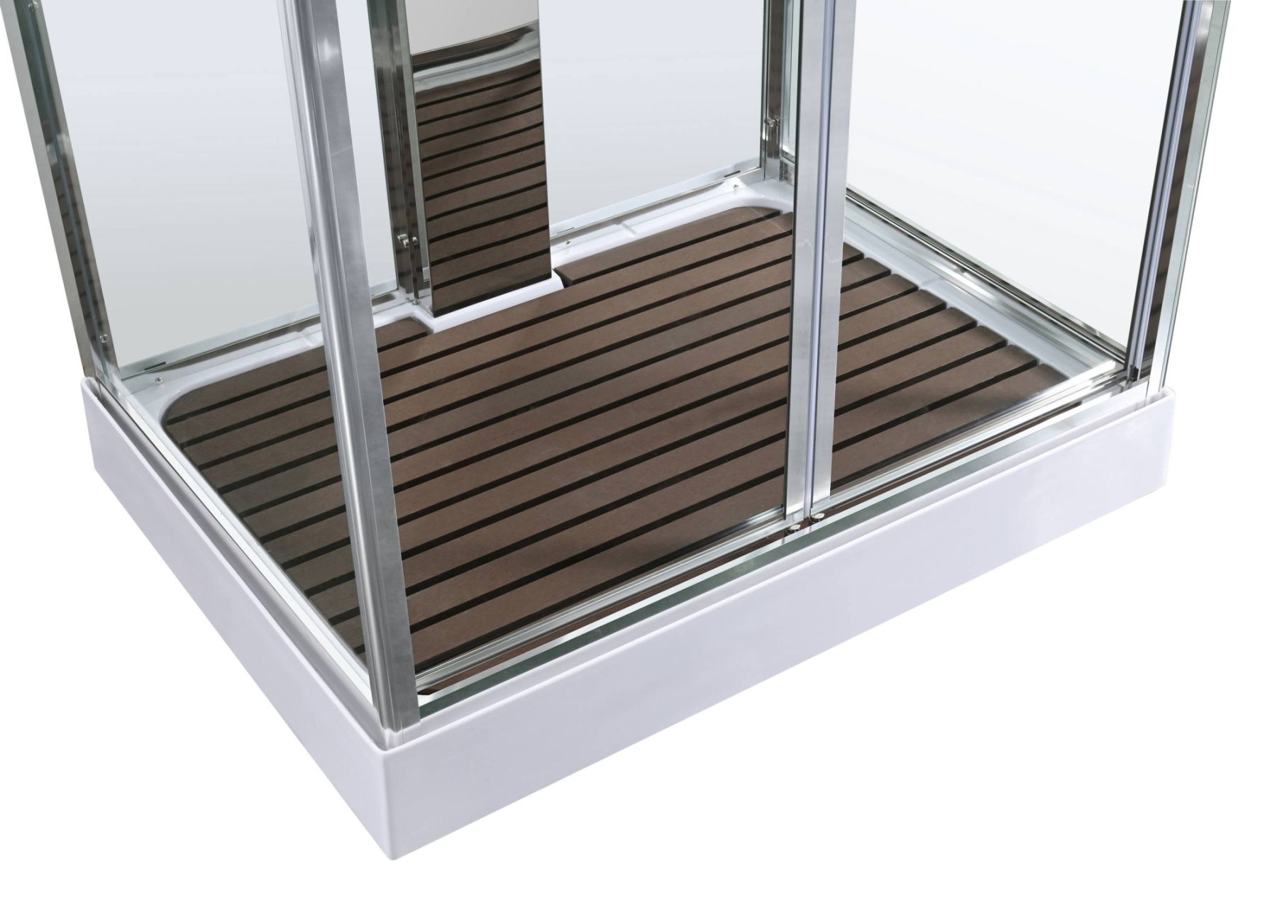 Стильная душевая кабина AvaCan сочетает в себе высокую функциональность, практичность и надежность. При изготовлении применяется безопасное закаленное стекло, надежно фиксируемое алюминиевым профилем. Профиль сделан из алюминия повышенной прочности. Сборка без силикона (увеличивает срок службы, защищает от протечек), внутренняя сборка (облегчает установку и ревизию; позволяет установить в ограниченном пространстве и обойтись без демонтажа других сантехнических приборов), смеситель резьбовой (без хомутов). Двойные металлические ролики дверей (распределение нагрузки на два ролика, увеличивают срок службы). Душевая штанга(позволяет регулировать по высоте ручную лейку), ручная арома-лейка с витамином С (картридж в комплекте,есть возможность замены или удаления картриджа), полочки(из стекла, с ограничителем), сифон с гидрозатвором.