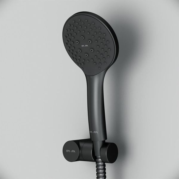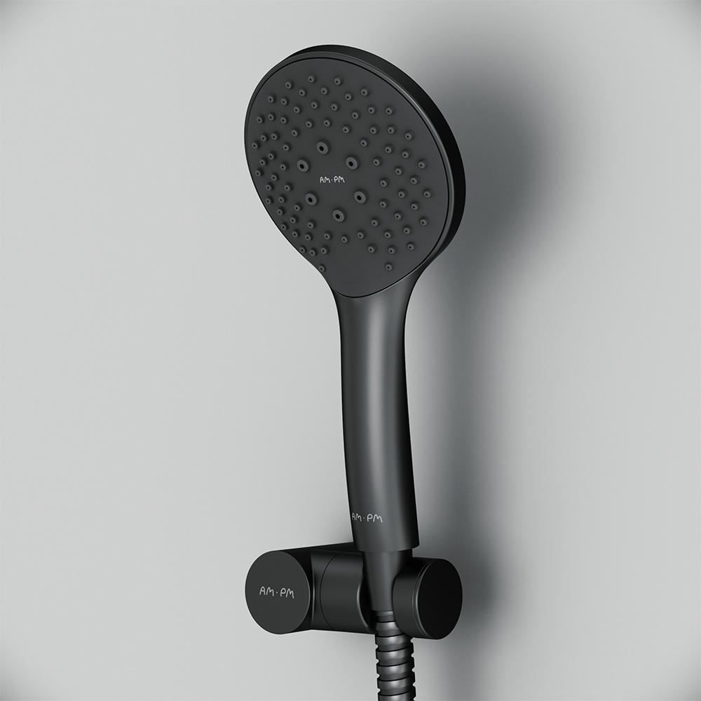 Душевая лейка Am.Pm Gem F0119022Gem F0119022, душевой набор: ручной душ 110мм, держатель ручного душа, душевой шланг, чёрный, шт., функция Rub&Clean для легкой очистки душевых форсунок. Один режим ручного душа.