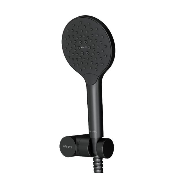 Душевая лейка Am.Pm Like F0118022Like F0118022, душевой набор: ручной душ 120мм, держатель ручного душа, душевой шланг, чёрный, шт.,функция Rub&Clean для легкой очистки душевых форсунок, функция Аir In для повышения эффективности и экономии воды, регулируемый держатель ручного душа, шарнирное соединение защищает душевой шланг от перекручивания.