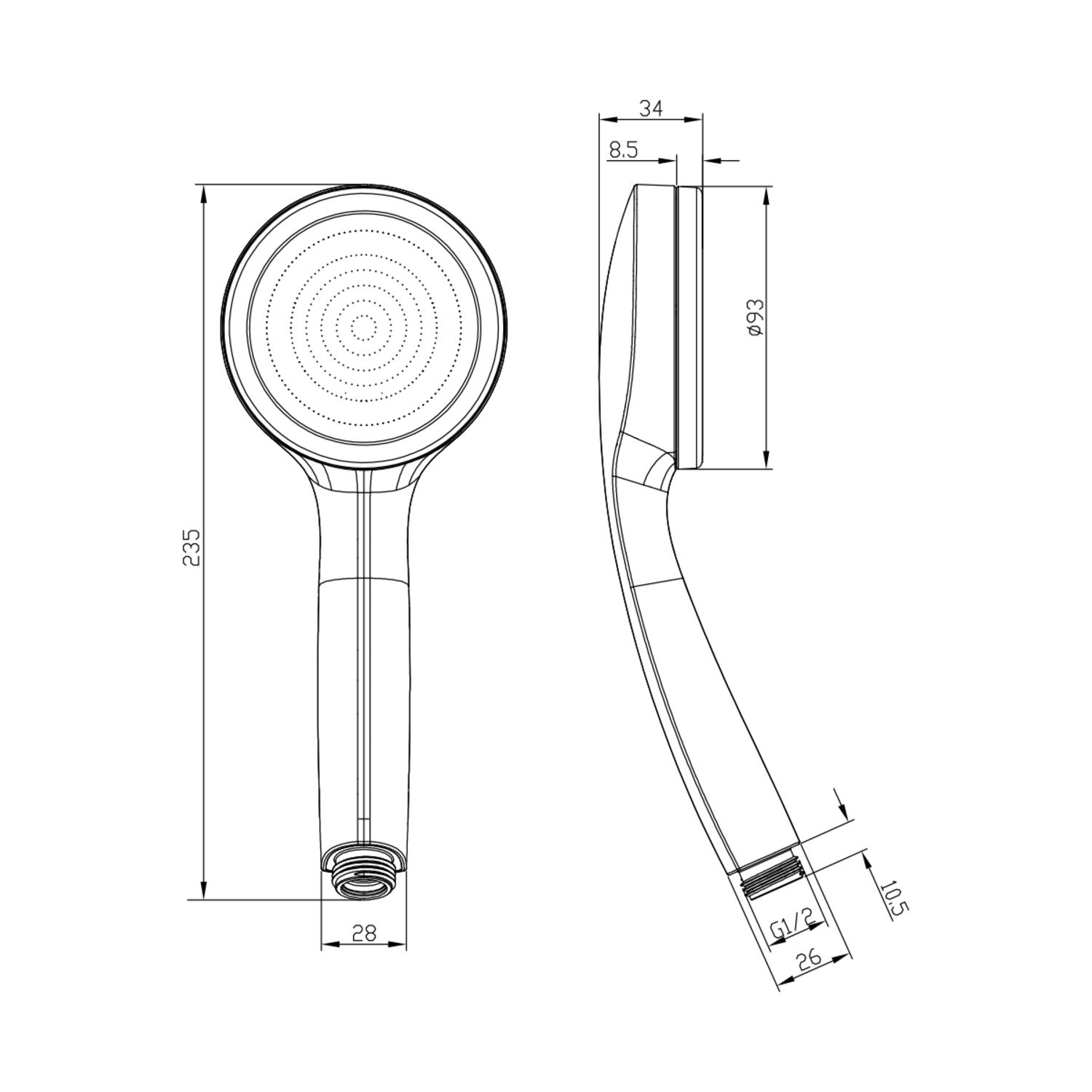 Лейка для душа из ABS-пластика с лицом из 304 нержавеющей стали, 1 режим (Relax = 355 отверстий), разборный механизм лейки, диаметр 95 мм, цвет - хром. В комплекте: сменный диск из 304 нержавеющей стали, с режимом Relax-Massage = 205 отверстий.