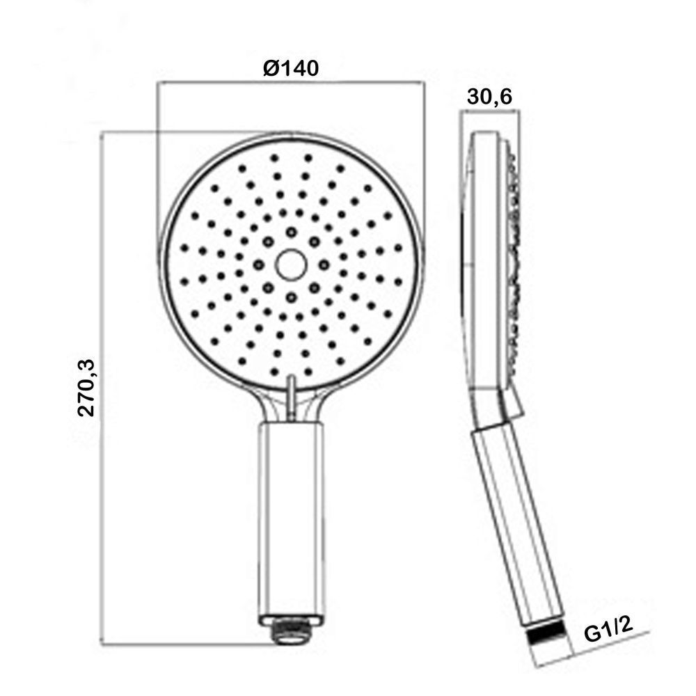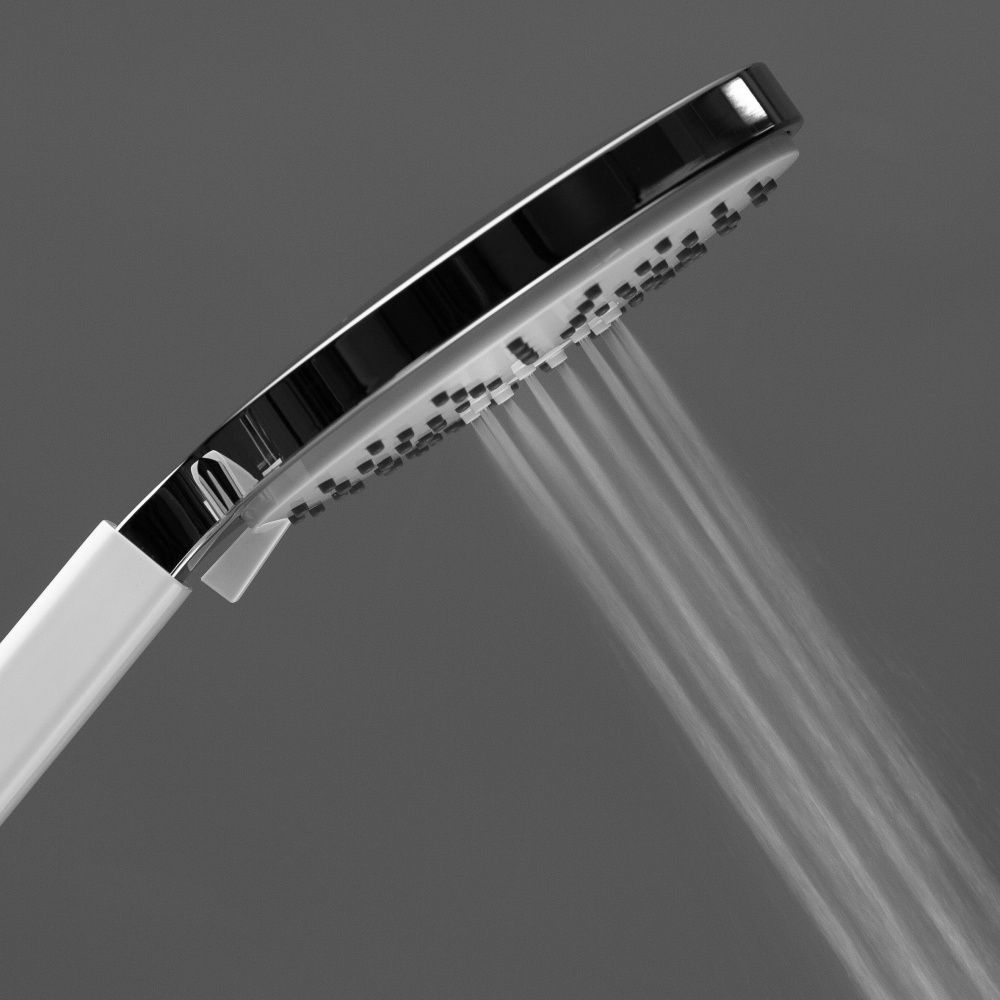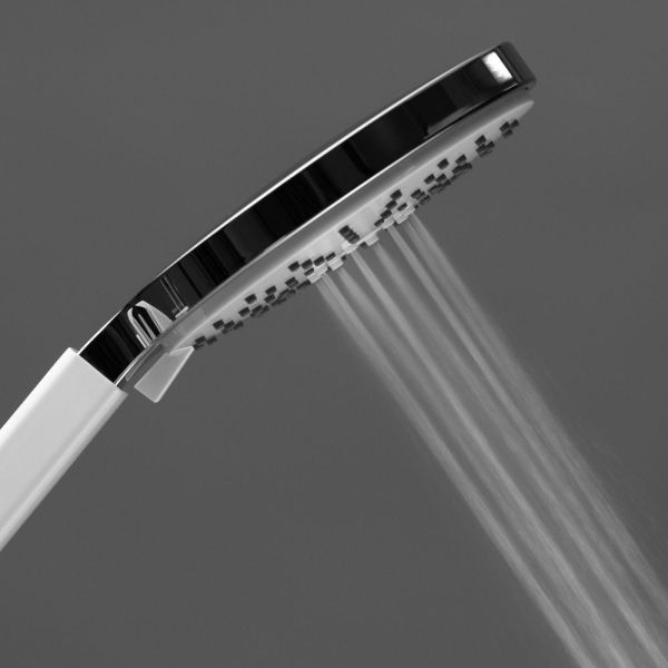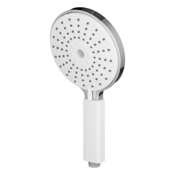 Ручной душ 3 режима,диаметр - 140 мм.Поток - 17,0 л/мин.Гипоаллергенный ABСпластик.Цвет: хром/белый.