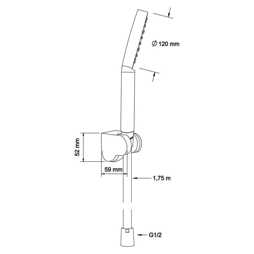 Душевой набор Диаметр лейки 120 мм.3 режима.Форсунки из силикона с функцией самоочистки.Гипоаллергенный пластик.Многопозиционный кронштейн.Шланг PVC 1,75 м.Цвет: черный.