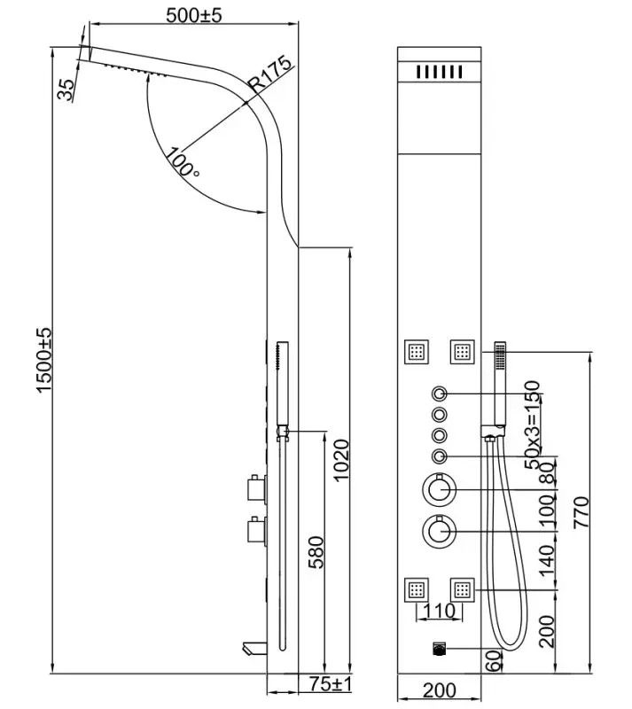 Душевая панель Denberg LT-201.Превосходно сочетается в интерьере современного стиля благодаря стильному дизайну, удобной конструкции и функциональности.