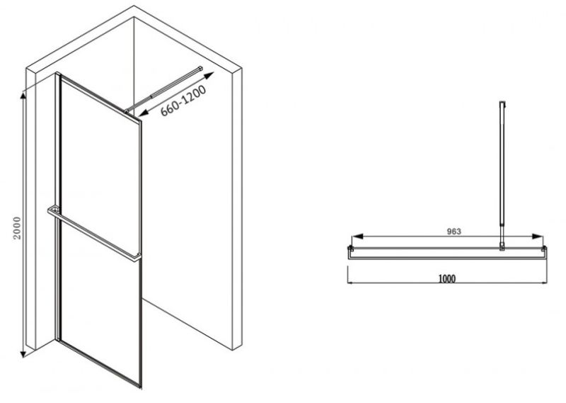 Душевая перегородка ABBER Immer Offen 100см чёрный AG60100B8