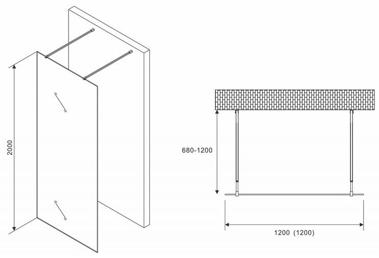 Душевая перегородка ABBER Immer Offen 120см чёрный AG68120B8