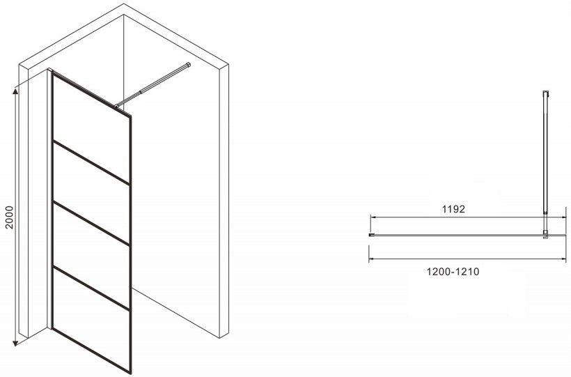 Душевая перегородка ABBER Immer Offen AG65120B 120см чёрный