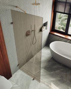 Стеклянная душевая перегородка "Коннектор стена-стекло" - это стильное и современное решение для организации пространства в вашей ванной комнате. Эта перегородка изготовлена из высококачественного закаленного стекла толщиной 8 мм, что обеспечивает прочность и долговечность конструкции. Одним из главных преимуществ этой перегородки являются коннекторы, которые надежно фиксируются и обеспечивают безопасность при принятии душа. Закаленное стекло , цвет бронза , толщина 8 мм , 1950*790-1 шт.