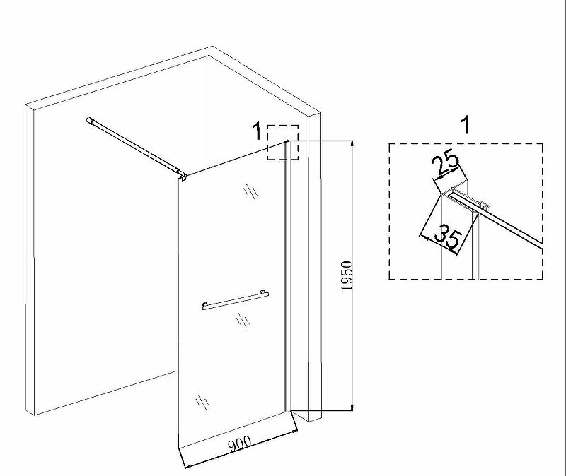 Исполнение полотна перегородки: прозрачное закаленное стекло, толщиной 6 мм.