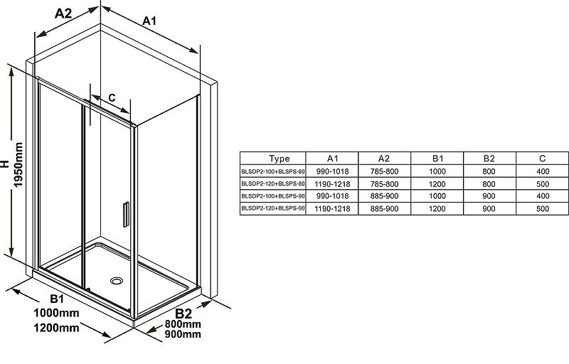Габариты (ШхВ): 800х1950 мм.