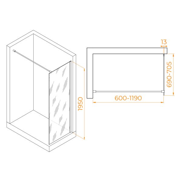 Душевая перегородка RGW WA-010 351001007-11 70см хром