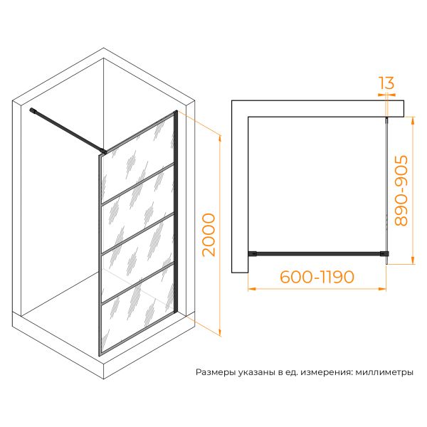 Душевая перегородка WA-019B — идеальное решение для создания стильного и функционального пространства в ванной комнате. С общей высотой 2000 мм, она надежно защищает от разбрызгивания воды за пределы душевой зоны. Перегородка оснащена прозрачным закаленным стеклом толщиной 8 мм, которое не только визуально расширяет пространство, но и придает современный и элегантный вид. Благодаря своей прочности, закаленное стекло обеспечивает высокий уровень безопасности и долговечности, что делает перегородку идеальным выбором для использования в ванной комнате. Профиль, выполненный из анодированного алюминия ALUSTRONG MAX, гарантирует долговечность и устойчивость к коррозии. Черная керамическая краска, нанесенная методом шелкографии. Стильный рисунок: горизонтальные линии и по периметру стекла, добавляет изысканный акцент и современный вид. 3 класс герметичности гарантирует, что вода останется там, где она должна быть, сводя к минимуму риск любого повреждения водой пола в ванной комнате.Универсальный монтаж позволяет легко и гибко установить перегородку в любой планировке ванной комнаты. Дополнительное покрытие стекла с эффектом анти-капля Easy Clean облегчает уход за перегородкой и сохраняет её чистоту. С ресурсом эксплуатации в 15 лет и гарантией 3 года, душевая перегородка WA-019B — надежный выбор для вашего душевого пространства!