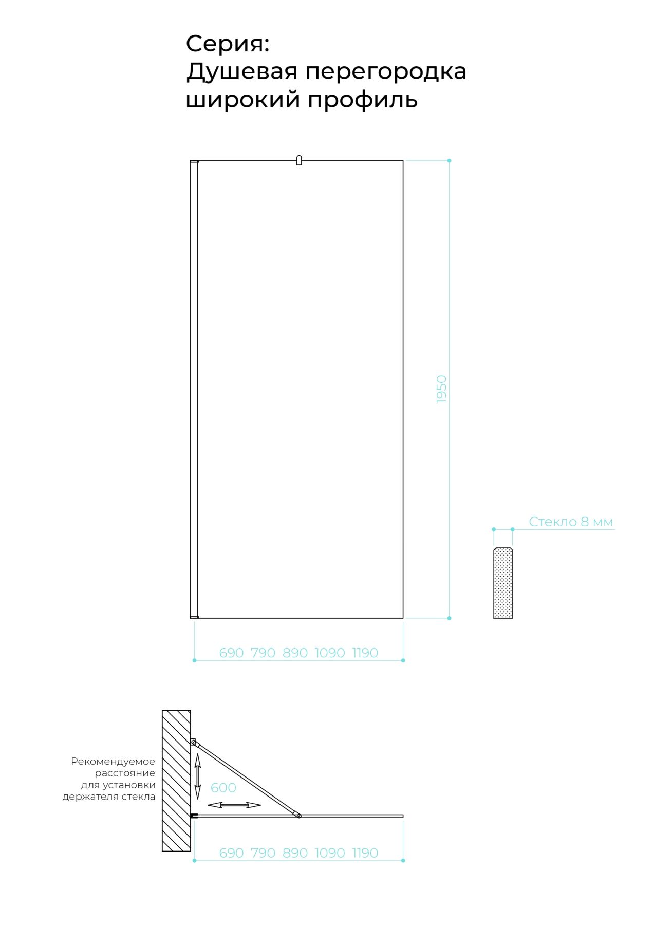 Душевая перегородка в профиле by Deonria P-195-119-8-T-HM 119см хром матовый/прозрачный