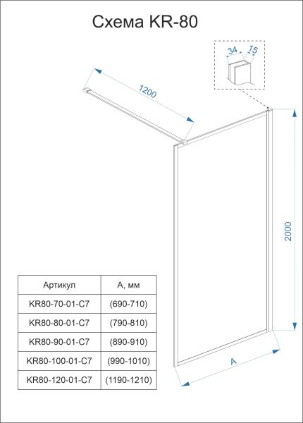 Душевая перегородка Veconi Korato KR-80, 1200x2000, черный матовый, стекло прозрачное, принт клетка купить