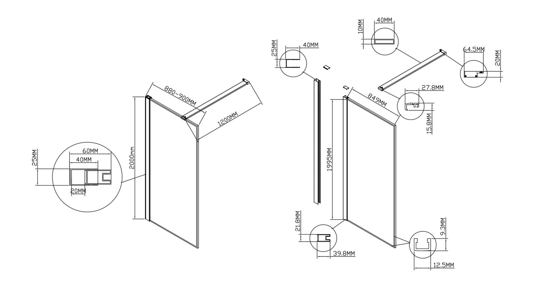 Душевая перегородка Vincea Walk-In HS VSW-1HS900CL, 900*2000, хром, стекло прозрачное