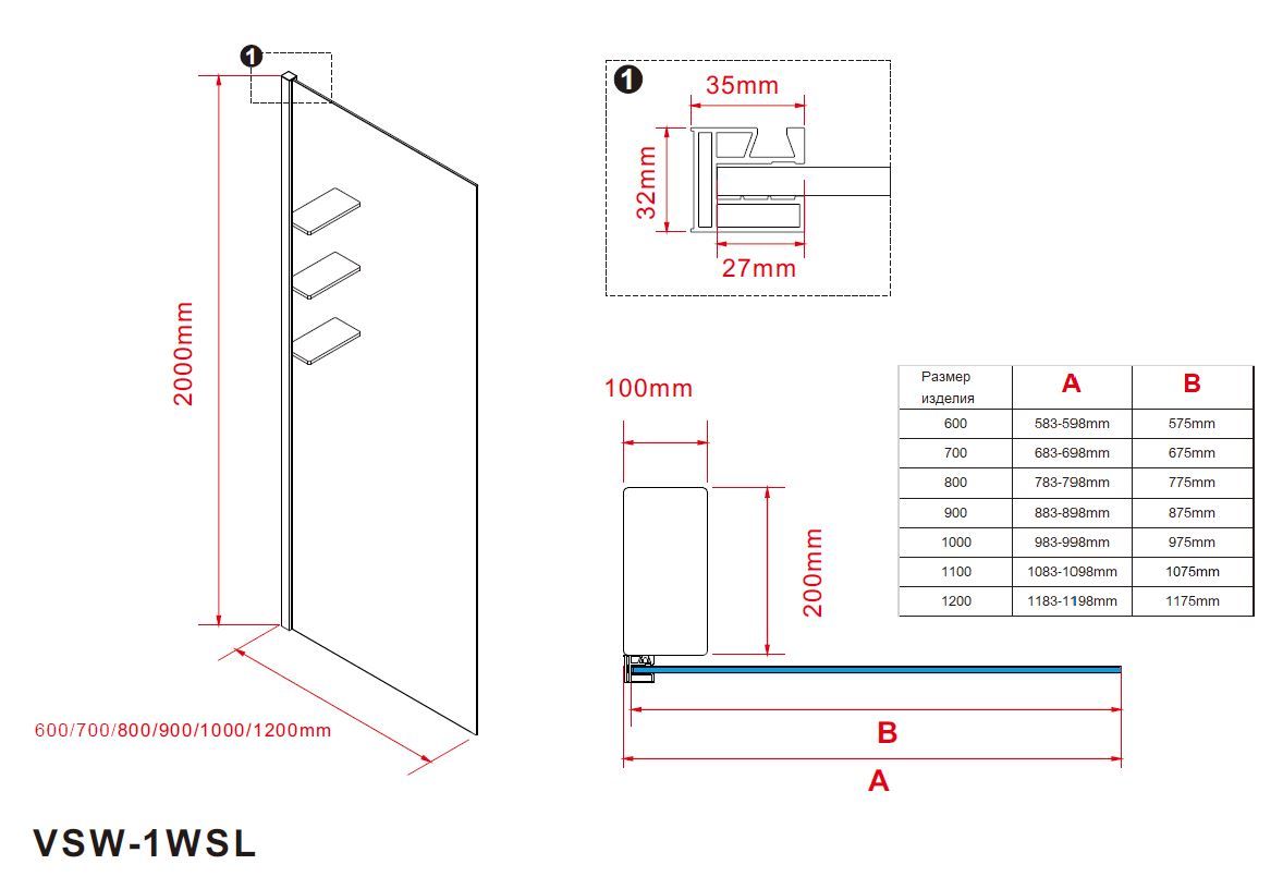 Душевая перегородка Vincea Walk-In VSW-1HWS900CGB, 900*2000, черный матовый, стекло тонированное купить
