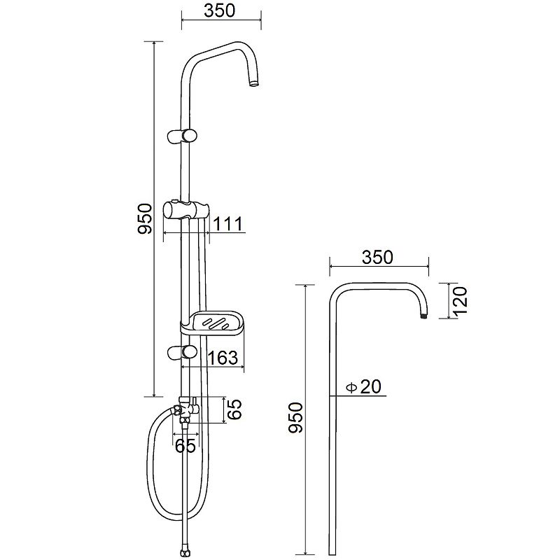 Душевой шланг: 150 см, пластиковый в металлической оплетке, с защитой от перекручивания.