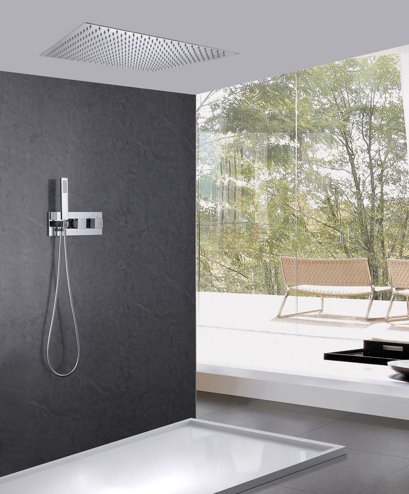Душевой комплект ABBER отлично дополнит ванную комнату своим незаменимым функционалом. Душевые комплекты ABBER включают в себя все необходимое для создания идеального душевого пространства. Душевой комплект ABBER производится из высококачественных материалов, с отсутствием вредных примесей. Основной цвет исполнения ABBER – хром, идеально подходящий к душевой зоне выполненной в стиле hi-tech. Душевой комплект ABBER правильное решение в оснащении ванной комнаты.Душевая система скрытого монтажа без излива, термостат, хром