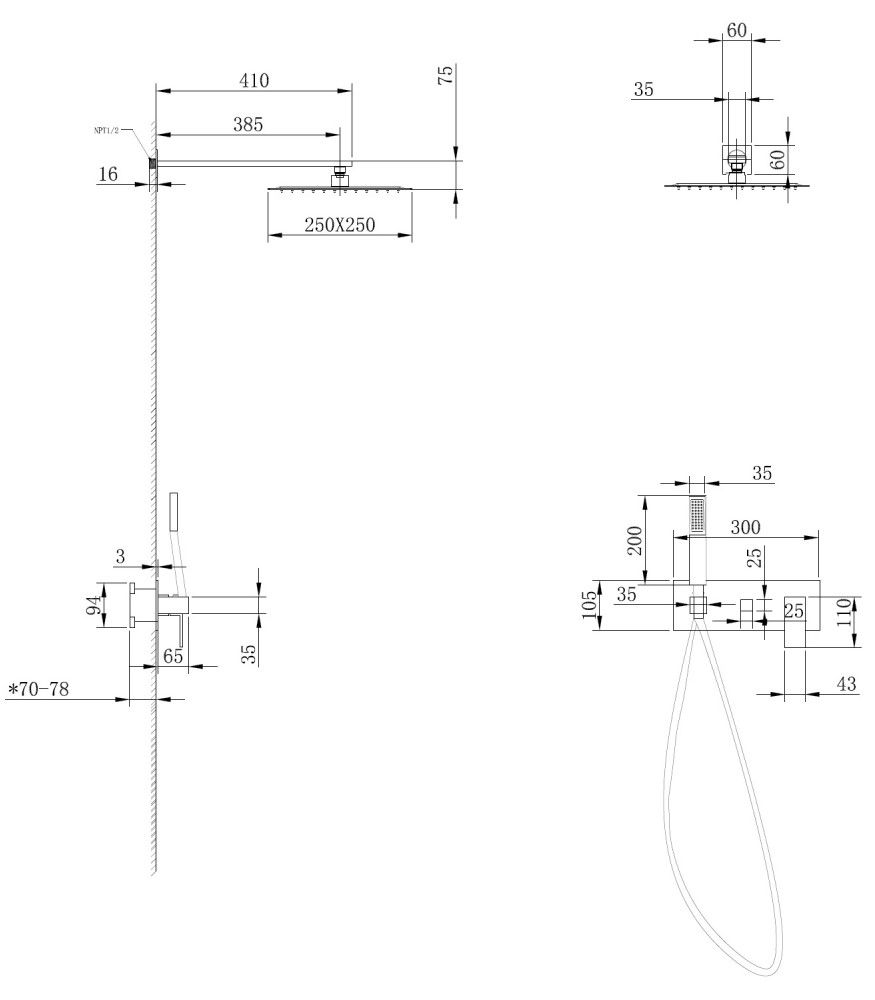 • Размер верхнего душа, см: