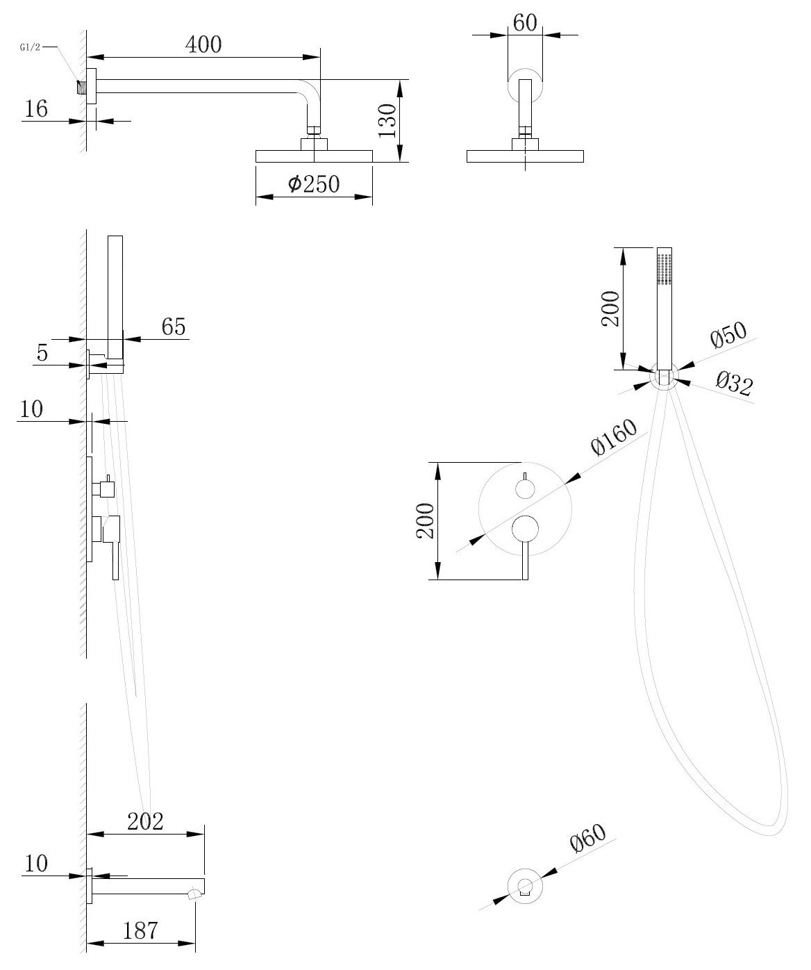 • Размер ручного душа, см: