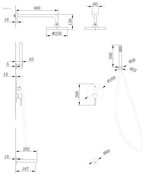 • Размер верхнего душа, см: