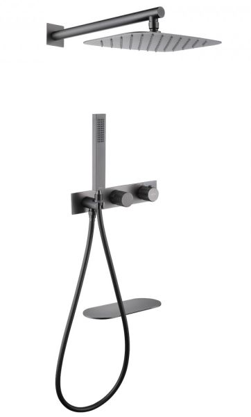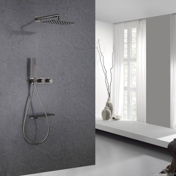 Душевой комплект ABBER отлично дополнит ванную комнату своим незаменимым функционалом. Душевые комплекты ABBER включают в себя все необходимое для создания идеального душевого пространства. Душевой комплект ABBER производится из высококачественных материалов, с отсутствием вредных примесей. Основной цвет исполнения ABBER – хром, идеально подходящий к душевой зоне выполненной в стиле hi-tech. Душевой комплект ABBER правильное решение в оснащении ванной комнаты.Душевая система скрытого монтажа с изливом, термостат, никель
