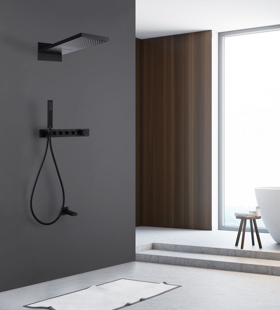 Душевая система ABBER Rund AF8753B с термостатом чёрный матовый