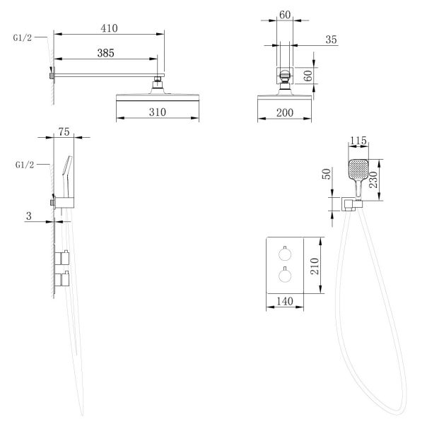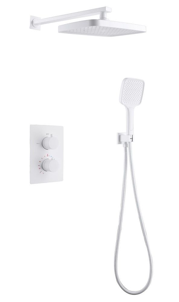 Душевой комплект ABBER отлично дополнит ванную комнату своим незаменимым функционалом. Душевые комплекты ABBER включают в себя все необходимое для создания идеального душевого пространства. Душевой комплект ABBER производится из высококачественных материалов, с отсутствием вредных примесей. Душевой комплект ABBER правильное решение в оснащении ванной комнаты.Душевая система скрытого монтажа без излива, термостат, белый