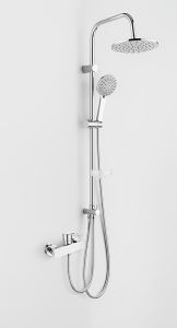 Душевая система с смесителем для душа будет прекрасно смотреться в интерьере современной ванной комнаты. Смеситель с фирменным картриджем делает лёгким управление напором и температурой воды. Корпус изделия изготовлен из высококачественной латуни, не подверженной коррозии от контакта с водой. Хромированное покрытие, за которым очень просто ухаживать мягкой салфеткой, обеспечивает блеск на долгие годы. Душевая система с регулируемым по наклону верхним душем (d 225 мм) и с пятирежимной лейкой (d 125 мм) доставят истинное удовольствие при принятии водных процедур (ручная лейка и верхний душ с защитой от известкового налёта). Для удобства предусмотрены мыльница с отверстием посередине для стока воды и надёжный гибкий шланг (1500 мм) с защитой от перекручивания (в оплётке из нержавеющей стали). Штанга 970 мм. с регулируемым по высоте держателем - возможность установки в старые отверстия.