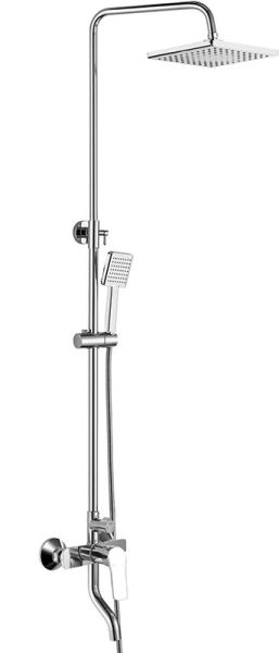 Душевая система (смеситель с изливом) в цвете глянцевый хром: верхний душ (215х215 мм) создаёт эффект тропического дождя, что дарит непередаваемые эмоции во время ежедневных банных процедур. Ручной душ 95х100 мм (1 режим) на гибком полутораметровом шланге (в металлической оплетке) с защитой от перекручивания. Держатели верхнего и ручного душа с регулировкой угла наклона, телескопическая штанга 800-1200 мм. Смеситель однорычажный (керамический картридж) с поворотным изливом (117 мм). Подвижные детали отличаются долговечностью. Аэратор, форсунки верхнего и ручного душа с функцией легкого очищения от известкового налета.