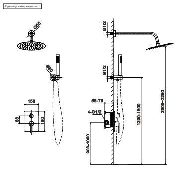Душевая система AltroBagno Unione 040108 GrMt оружейная сталь