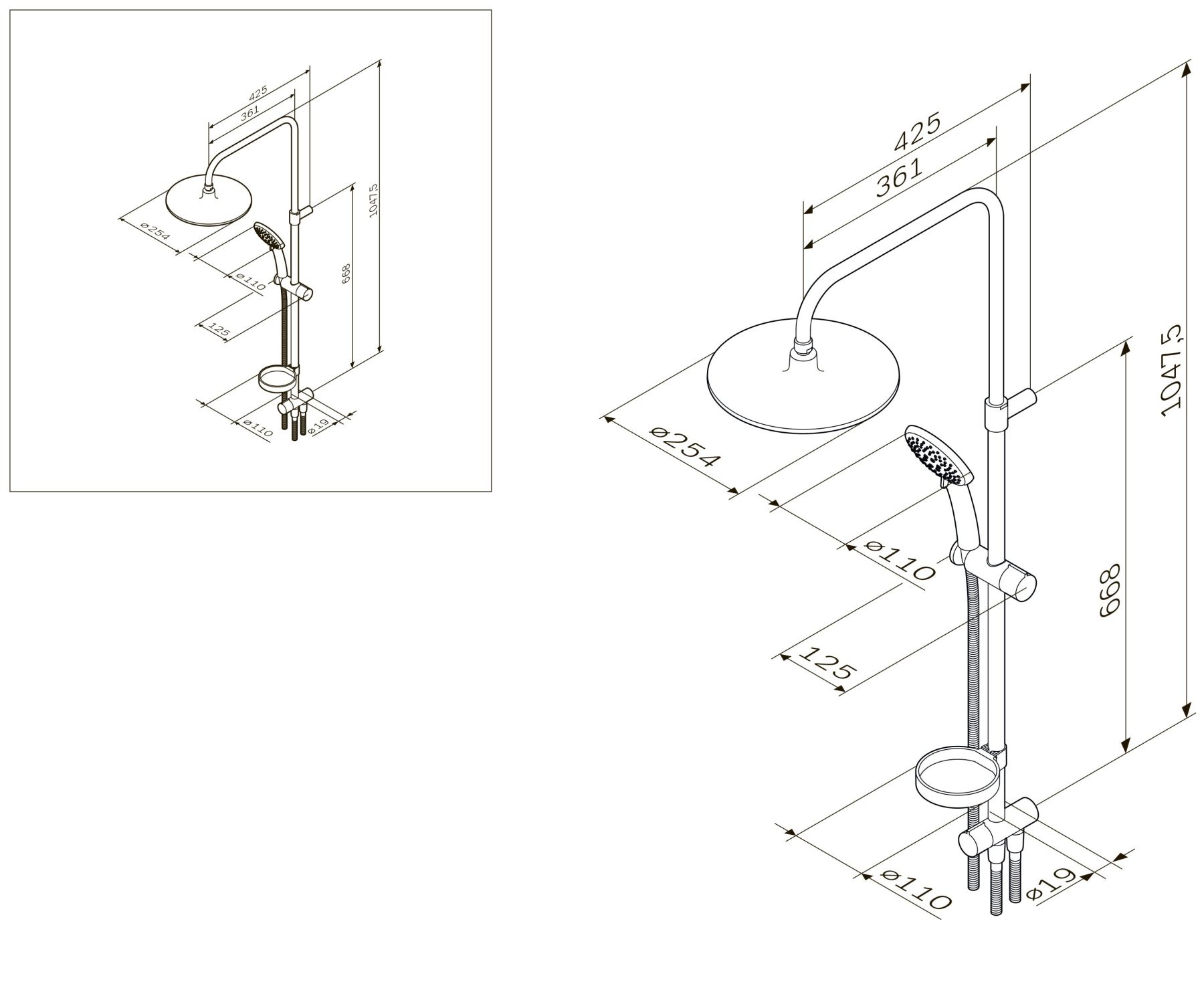 • Размер верхнего душа, см:
