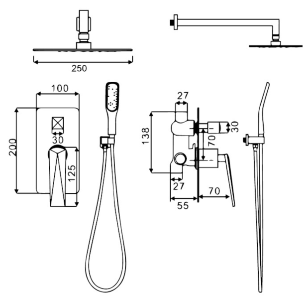 В комплекте поставки:Смеситель (внешняя и внутренняя часть).