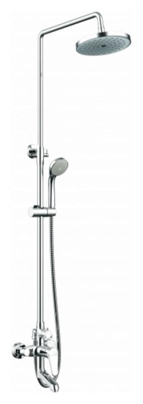 Душевая стойка для ванны Bravat Eco с большим плоским диском верхнего душа и смесителем с поворотным изливом. Серия известна не только своим качеством, но и высоким уровнем эргономики.